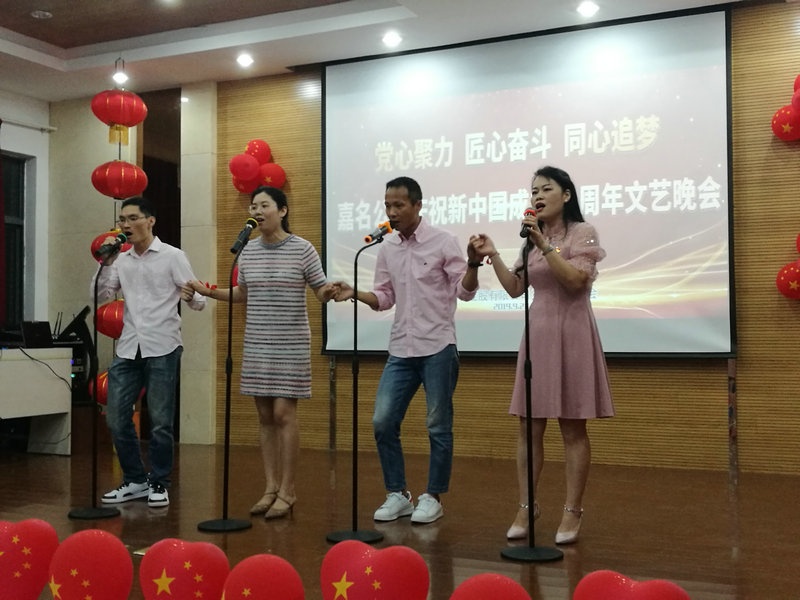 整场晚会紧紧围绕“党心聚力,匠心斗争,同心追梦”这一主题, 通过独唱、合唱、歌舞、诗朗诵、小品等演出形式,穿插知识题竞答,讴歌新中国,讴歌新时代,讴歌新生活,抒发财国情怀,充分展现了仲博人爱党爱国爱仲博,追求美好生活,奋力奔驰追梦的精神风貌。正如公司莫总致辞中所说:文艺晚会必将鼓舞士气,凝聚力量,激励宽大员工坚定信仰、信念、信心,以越发饱满的热情,越发充分的劲头,越发务实的作风,投入到生产事情中去,为早日实现仲博梦同心同行,奋力奔驰。以我们的实际行动和优异结果,感恩祖国,感恩这个伟大的时代。
