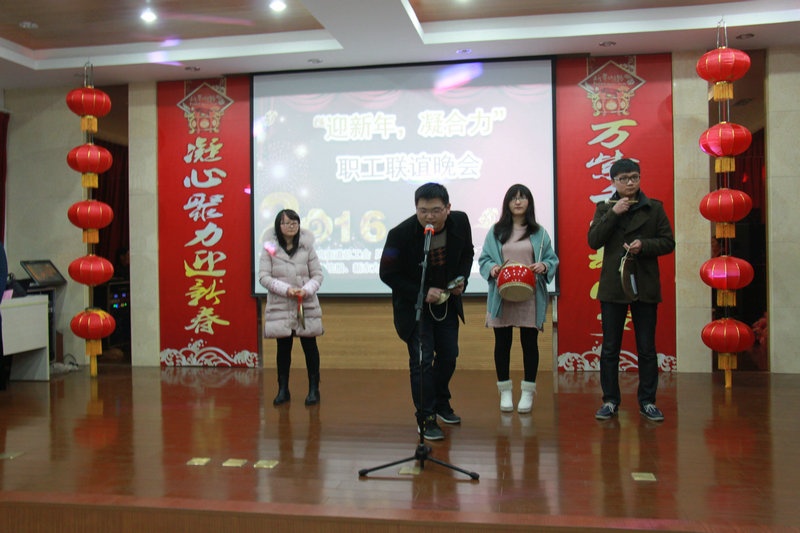 歌曲《仲博之歌》、三句半《贺2016新年》、千叶玉玲珑花茶茶艺演出、舞蹈《CRY CRY》、诗朗诵《不平的脊梁》、……表达职工心声的歌曲、展现职工风范的舞蹈、充满青春活力的种种演出节目,“猜猜看”、“绑腿接力赛”、“转圈前进”、“摸石过河”……等趣味互动游戏和《工会法》、《劳动条约法》、《宁静生产法》等规则知识题抢答,另有“新年温暖奖”、“新年快乐奖”、“新年幸福奖”抽奖运动的创意组合,让现场热潮迭起。12月29日晚,由凤鸣街道工会主办,“仲博控股”、“新东方油墨”、“豪庭灯饰”、“周遭聚合纤”承办的“迎新年,凝协力”职工联谊晚会在仲博员工公寓区运动楼多功效厅精彩上演。