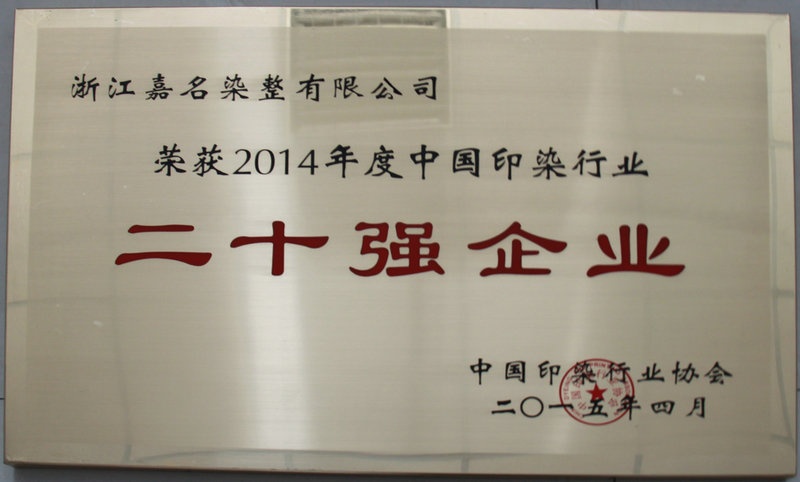 浙江仲博染整有限公司获“2014年度中国印染行业企业20强”