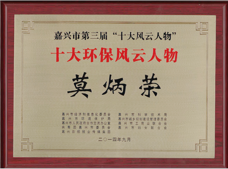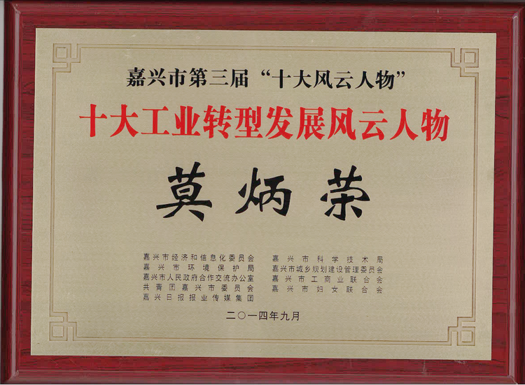9月18日,在嘉兴市第三届“十大风云人物”颁奖仪式上,公司董事长兼总经理莫炳荣同时荣获“嘉兴市十大工业转型生长风云人物”、“嘉兴市十大环保风云人物”荣誉称呼。