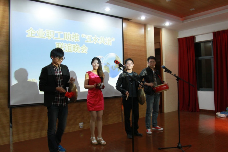 4月29日晚,由凤鸣街道总工会主办,“仲博控股”、“新东方油墨”、“豪庭灯饰”、“周遭聚合纤”协办的“企业职工助推`五水共治'联谊晚会”在仲博公司员工公寓区举行。晚会运动围绕“五水共治”,职工青春贡献的主题,宣传“五水共治”,体现企业职工积极加入“五水共治”运动,整个晚会洋溢在热烈、欢快的气氛中。来自四家企业的职工和凤鸣街道驻村干部演出了自编自演的快板、三句半、诗朗诵、唱歌等种种节目,晚会中还穿插了趣味游戏和知识抢答节目。仲博公司姚卫良、姚鸿、钱珍、吴耀等演出的“‘五水共治’生态美”三句半赢得了观众的热烈掌声,晚会在仲博公司平晓红赞美的《爱的贡献》中结束。