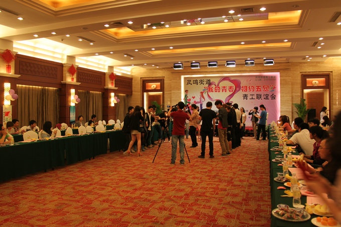 5月4日晚,桐乡东方大酒店四楼多功效厅内,灯火辉煌,欢声笑语,近百名基本为一比一的男女青年和来宾欢聚一堂,庆祝青年的佳节,寻找未来的幸福。
