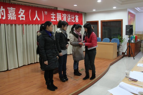 12月17日晚,公司工会、团支部联合举办的 “我心中的仲博(人)”主题演讲角逐,12名选手加入了角逐。李丹华获一等奖,范晓磊、张金金获二等奖,宋建会、陈华芳、杨  丽获三等奖,陆松芬、谢建甫、卫建秋、钟晓兰、黄孝军、陈慧琴获勉励奖。凤鸣街道党委委员吴霞萍,公司总经理莫炳荣为获奖选手颁奖。